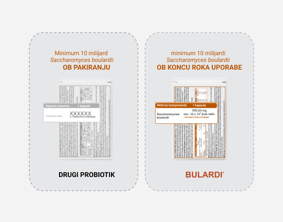 - Probiotiki so ŽIVI mikroorganizmi, katerih število se s časom zmanjšuje, kar zmanjšuje učinkovitost izdelka. Zato je pri izbiri kakovostnega izdelka pomembno, da deklaracija vsebuje število probiotičnih kultur do izteka roka uporabe.